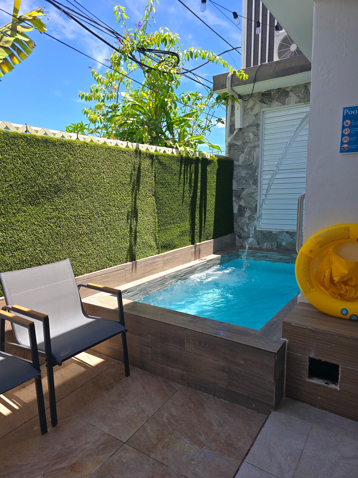 Utiliza este oasis privado con una hermosa terraza sombreada, jacuzzi, fogata, parrilla, comedor, aro de baloncesto, ducha al aire libre y proyector inteligente como tu centro mientras exploras Puerto Rico. 😎 Disfruta de espacios privados al aire libre de día y de noche 📱 A los amantes de la tecnología les encantarán los detalles dentro de la casa 💡 Generador de energía 🗺️ ¡Cerca de las principales atracciones como el Viejo San Juan y más! Una experiencia creada para ti por un boricua