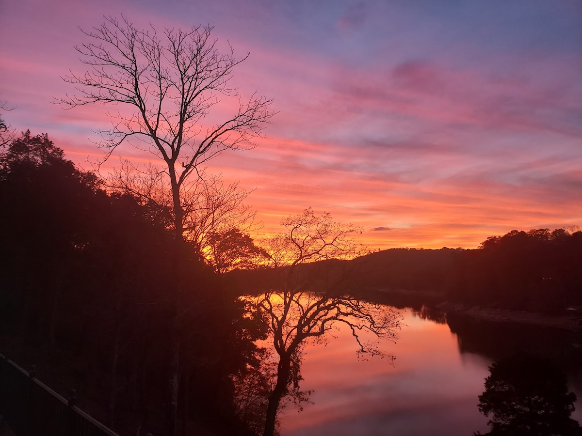 Descubre tu acogedor refugio de invierno en River Rock Retreat, organizado por WataugaLakeVacations. A solo 50 minutos de tres centros de esquí de Carolina del Norte, esta tranquila escapada ofrece hermosas vistas al lago Watauga, un muelle compartido para pescar y pasear en bote durante todo el año, e impresionantes amaneceres invernales desde la terraza. Disfruta de un fácil acceso al sendero de los Apalaches, visita las bodegas locales o explora las ciudades de montaña cercanas, luego caliéntate junto a la chimenea de leña o reúnete en el fogón a medida que avanza la temporada.