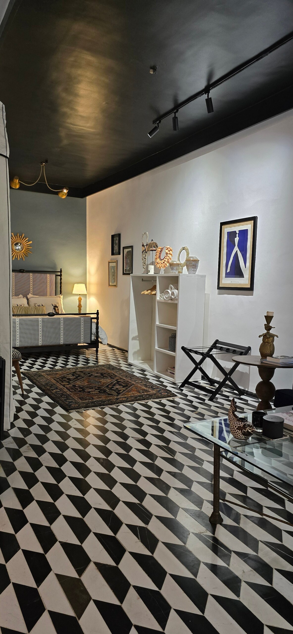 Antiguo taller de pintura de un gran pintor tunecino, este estudio se encuentra en un parque tranquilo en el corazón del pueblo azul y blanco Sidi Bou Said. -salón, dormitorio, cocina, baño y patio privado -cama de 2 plazas, 2 banquillos de 1 plaza en la sala de estar -cocina equipada, cafetera, hervidor de agua, tostadora -cuarto de baño con ducha -patio con bancos y mesa para desayunar -wifi - aparcamiento privado - piscina comunitaria -parque privado - bajar escaleras para acceder al estudio