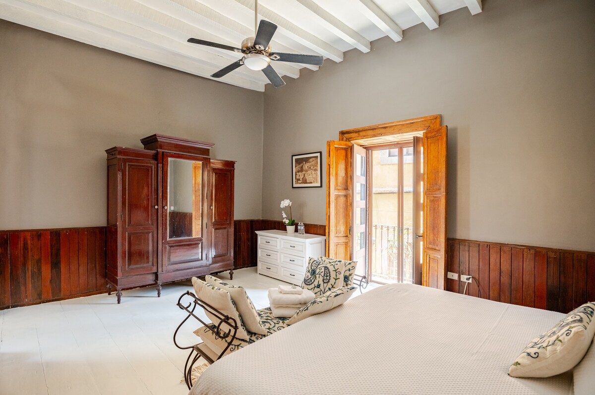 A stunning, newly renovated historic home in the heart of Gto. This home is for those who love to travel and enjoy staying at an upscale place with comfort and style. Conveniently located, less than 100 yards from plaza San Fernando, callejón de el beso and many more colorful attractions. Great restaurants, bars and cafes just a few yards away. With a gorgeous view of a plaza and city views from dual rear balconies you will truly feel pampered. Single story home,good fit for older folk.