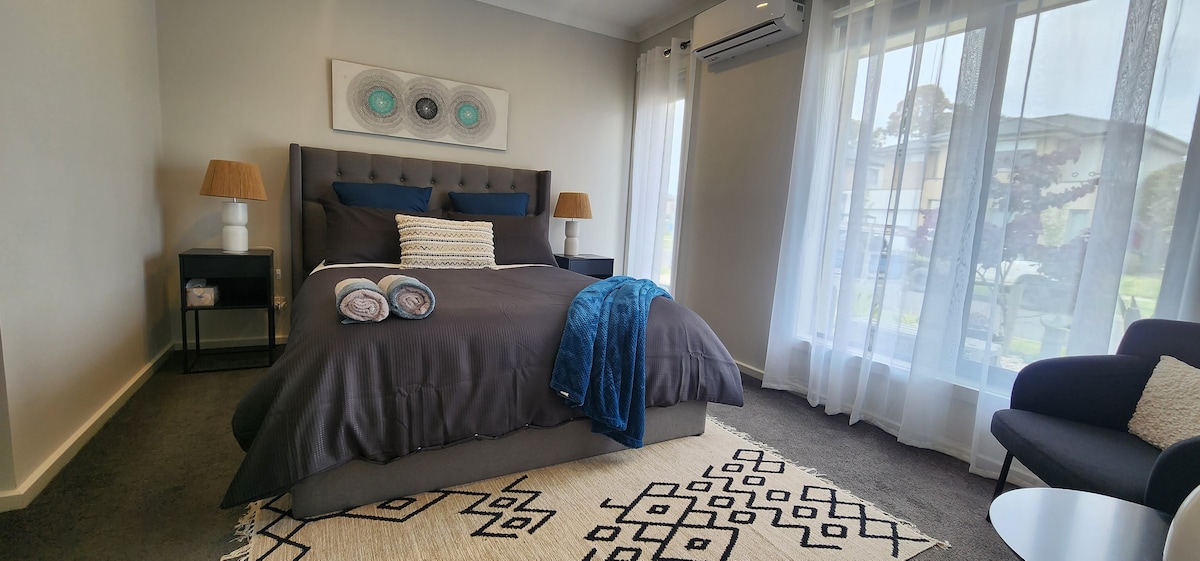 Esta casa de 3 dormitorios de nueva construcción se encuentra en una ubicación muy conveniente. Ideal para solteros o parejas que buscan un lugar relajante para alojarse. Disfruta de espacios abiertos con una cocina totalmente equipada, baño privado y un relajante patio al aire libre con barbacoa. Estamos a poca distancia de 2 supermercados, restaurantes, cafeterías y necesidades médicas. Puedes llegar fácilmente a una variedad de parques, parques infantiles, al Casey Race Aquatic Centre y al Cranbourne Race Track. Aparcamiento fuera de la calle disponible. Te deseamos una estancia placentera.