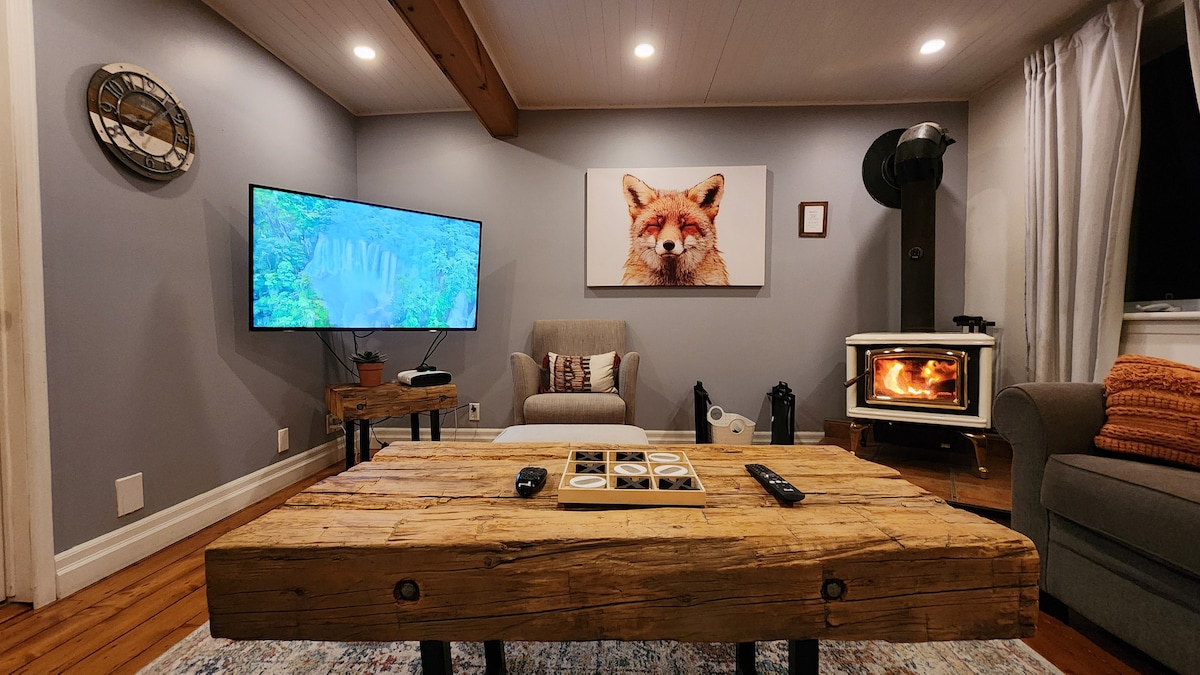 Acogedora cabaña + spa y chimenea