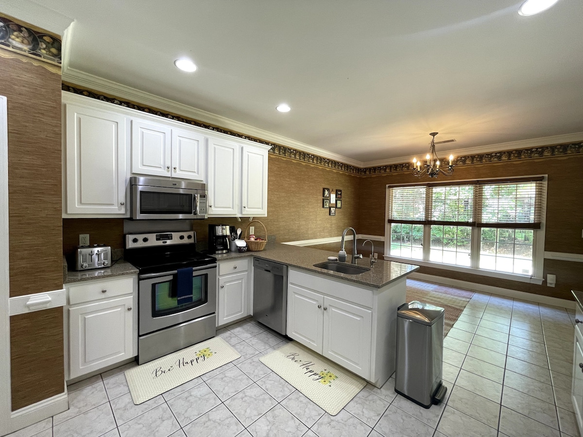 Disfrutarás de esta casa escondida en un callejón sin salida en una subdivisión establecida. Está a poca distancia en coche (7 minutos) del Nash General Hospital, del centro de eventos, de lugares de interés, de The Mills y del complejo deportivo. Tanto si viajas por negocios a Rocky Mount/Greenville/Wilson/Zebulon como si vienes de visita para torneos deportivos locales, reuniones familiares, eventos vacacionales o de paso a Outerbanks, Washington DC o Nueva York. Acceso cercano a la autopista 64/I-95 y a una hora del aeropuerto RDU.