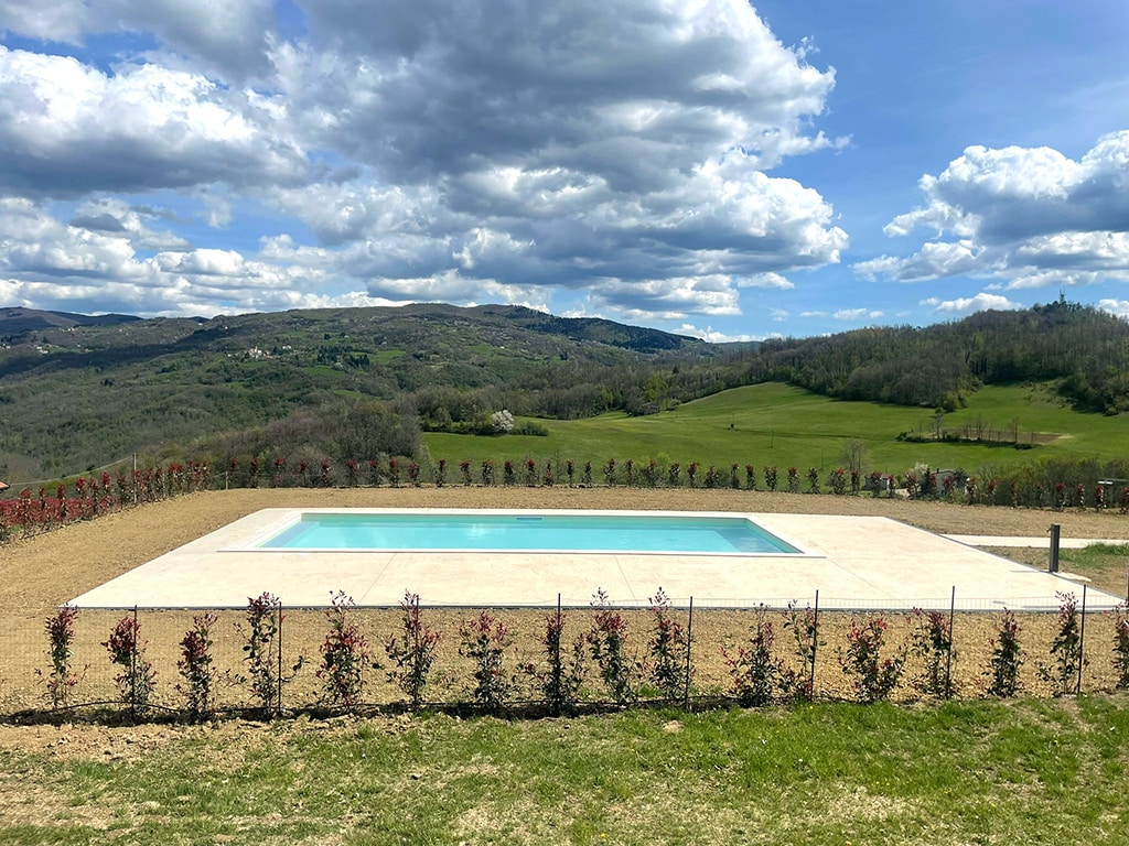 Hermosa granja en la cima de una colina con piscina