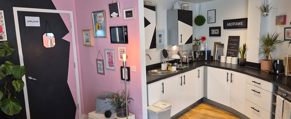 A bright, cosy, and quirky 2 bed apartment available right in the heart of Cardiff Bay - perfect for a weekend break. Bedroom 1: King Size Bed Bedroom 2: Bunk Bed Cardiff Bay offers everything you need during your stay; the fl;at is adjacent to Wales Millennium Centre, Mermaid Quay, cinema, bowling... and easy access to the city centre and Principality Stadium. The walk into town takes 20 minutes, a quick bus or a train journey from the bay, or an Uber - which is usually around £3-£5.