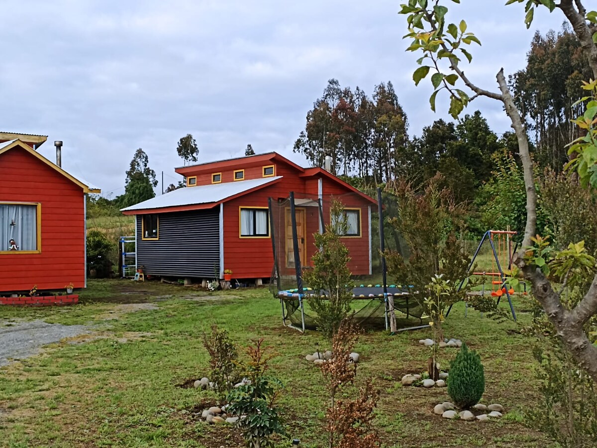 Nuestro espacio se ideó como una cabaña tipo Tiny house, amplia y cómoda, con la privacidad y tranquilidad que entrega el entorno natural de Castro rural. Esta equipada con wifi, smartv, frigobar, microondas cubiertos y artículos de cafetería. Nos ubicamos en Gamboa Alto, en el límite urbano de Castro, a 8 minutos del centro en vehículo. Contamos con áreas de bosque, mesón exterior y amplio estacionamiento. El espacio de un ambiente es adaptable para 2 adultos y un niño.