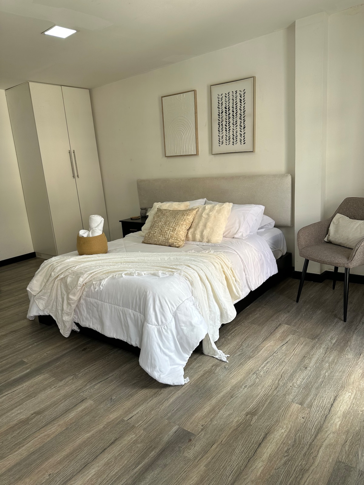 Disfruta de una experiencia con estilo en este alojamiento céntrico. Te ofrecemos un Mini Suite con todo lo necesario en el hogar, con 1 cama matrimonial y 1 sofá cama, servicios básicos, agua caliente, aire acondicionado. Lavadora y secadora (uso compartido). Un mirador excepcional en la terraza donde podrás ver el aeropuerto, la diversidad de nuestro Valle encantado Catamayo y sus bellos atardeceres, un área de barbacoa con parrilla donde podrás tener un descanso agradable y relajante.