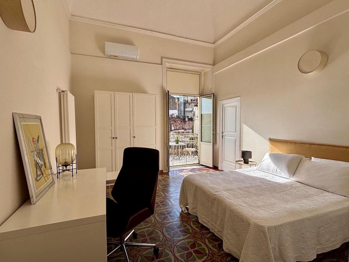 Forte Santa Barbara es un elegante apartamento de 90 m² en la primera planta con una entrada semiindependiente, en un edificio histórico renovado en el corazón de Catania. Los suelos originales, los techos abovedados, las dos terrazas y una espectacular ducha doble ofrecen encanto y comodidad. La calle es peatonal porque debajo del edificio se encuentra la evocadora Tricora romana (siglos II-IV d. C.): aquí literalmente dormirás sobre la historia de la ciudad.