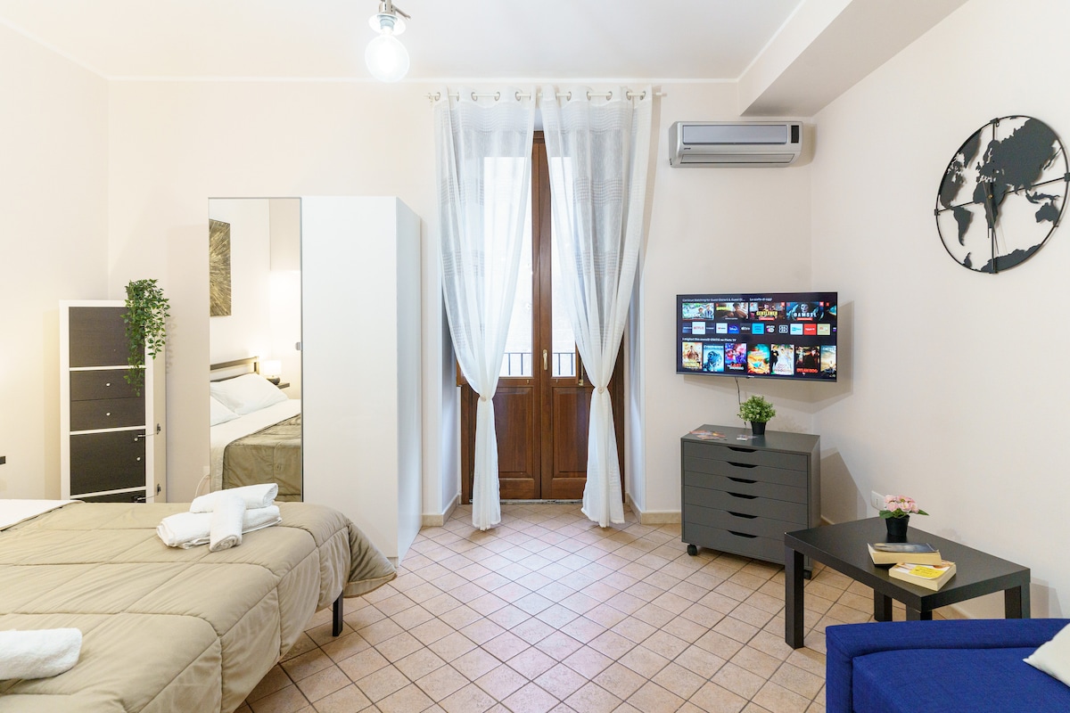 La casa se encuentra en el primer piso de un edificio histórico situado en Via Antonino di Sangiuliano, la calle principal que va desde el mar hasta el centro histórico de Catania. Su ubicación estratégica permite vivir y visitar el centro histórico completamente a pie, ya que está a pocos pasos de los principales puntos de interés de la ciudad, como plazas, monumentos, museos, iglesias, bellezas arquitectónicas, restaurantes, bares y la Via Etnea con sus tiendas.