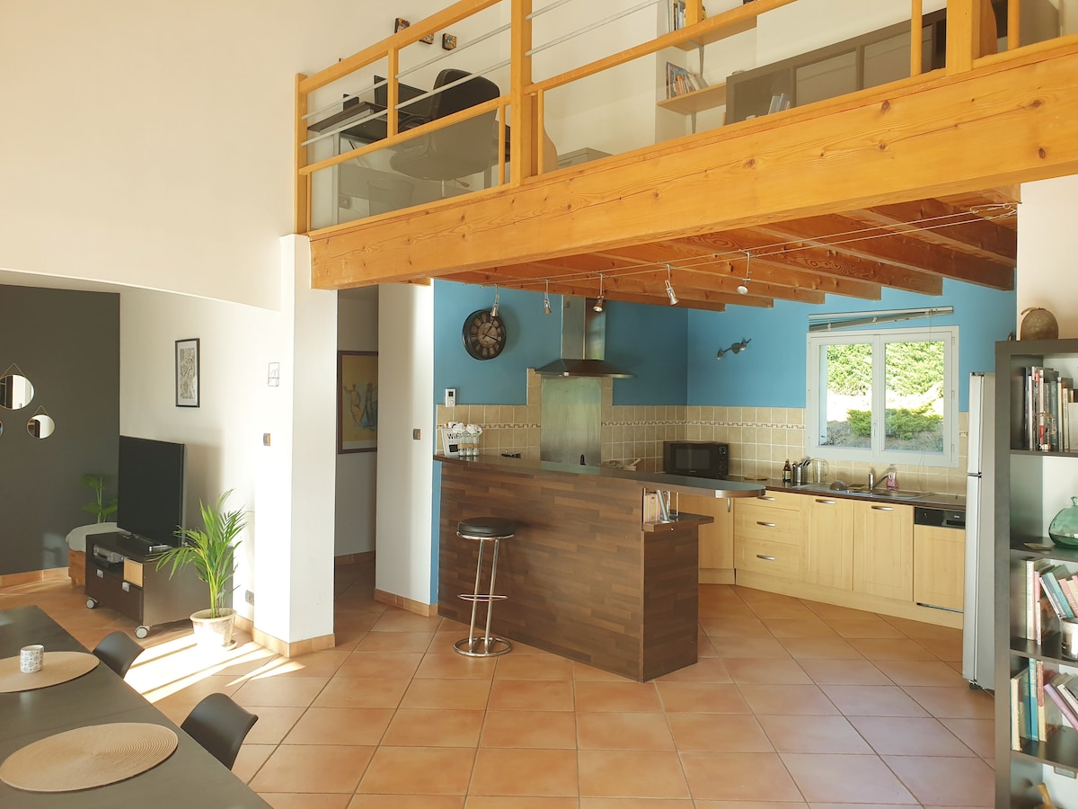 Bienvenido “Al murmullo del arroyo”⭐️⭐️⭐️ Loft con encanto de 50m2 independiente y de gran volumen situado en el corazón del parque regional de los Pirineos Ariégeoises. ⛰️ Venga a disfrutar de un lugar tranquilo y cálido al borde del bosque y del arroyo. Encontrará un espacio de baño abierto con bañera de acacia, junto a la chimenea en invierno. 🔥 Un balcón y un jardín con la frescura del arroyo en verano . 🌼 1h Toulouse / 15 min Foix / 1h estaciones de esquí