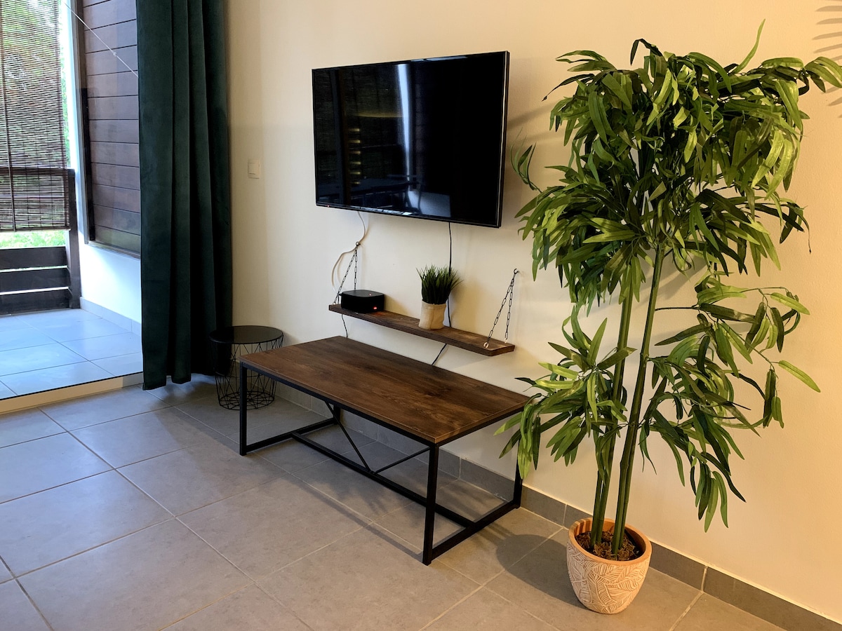 Profitez d'un logement élégant situé dans la zone animée de la Zac Hibiscus, idéalement placé, vous trouverez des restaurants et l’Université à proximité. Ce logement climatisé est idéal pour les personnes seuls ou les couples, il dispose d'un balcon qui donne sur la route qui mène aux restaurants. À votre disposition équipements de cuisine, draps, serviette, internet, Netflix. Lit 160x200. Au rez-de-chaussée de la résidence vous trouverez une laverie et sur le balcon un étendoir.