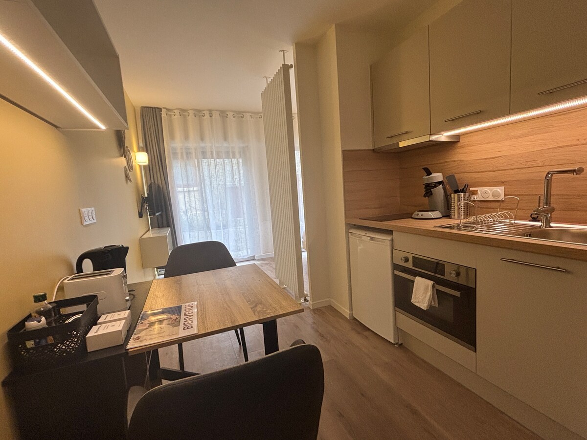 Acogedor apartamento de 22 m2 idealmente situado en el corazón del balneario, a 400 metros de la cura y a 200 metros de las tiendas, Perfecto para una estancia relajante. Cocina equipada, cama cómoda y ambiente cálido. Perfecto para viajeros que buscan relajación y bienestar.