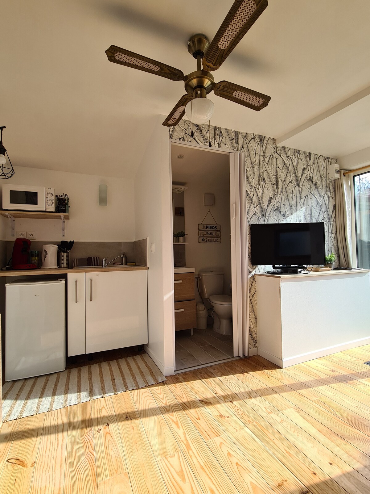 ¿Te apetece tranquilidad y naturaleza a dos pasos del lago? Disfrute de una estancia acogedora en este encantador estudio de 15 m², ubicado en una zona verde en Cazaux, en el municipio de La Teste-de-Buch. Relájese en su terraza privada bajo pérgola y disfrute de un interior con todas las comodidades: ropa de cama de calidad, TV con Chromecast, secador de pelo y ventilador de techo de diseño, silencioso, con modo verano/invierno. Un lugar ideal para relajarse, lejos del ajetreo y el bullicio, entre el lago, el bosque y el océano.