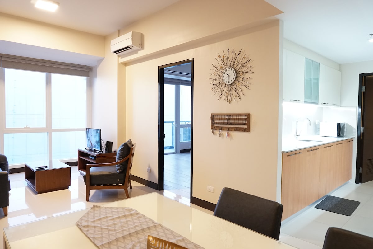 Apartamento ejecutivo moderno de 1 dormitorio a solo 15 minutos del aeropuerto Cama tamaño Queen de calidad Wifi/SmartTV/Netflix gratis Caja fuerte con cerradura Acceso con cerradura inteligente Ducha caliente, bidé Cocina totalmente equipada Agua potable gratuita del dispensador japonés Amplio balcón, vistas al mar y brisa Gordon Ramsay/Japón/Restaurantes coreanos,Conserje,Piscinas,Seguridad 24 horas Supermercado, 7/11, panadería, Starbucks, McDonald's, farmacia, cajeros automáticos Pases de playa 350 PHP/persona AVISO IMPORTANTE: Por favor, revise las descripciones de las propiedades a continuación antes de hacer su reserva