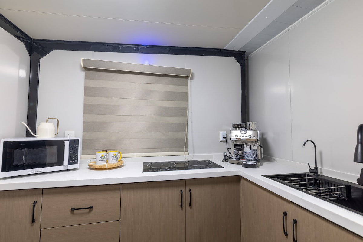 Te encantará esta escapada única y romántica rodeada de naturaleza. Nuestro geodomo ofrece las comodidades necesarias para una escapada increíble; cómoda cama queen, cocina, baño interior, proyector de pantalla, terraza privada, jacuzzi iluminado, bocinas exteriores con bluetooth y una terraza con una vista increíble. Nuestra propiedad está ubicada cerca de Charco Prieto. Cuando llegues a Green Sunset Dome, ingresarás a tu propio espacio privado para vivir una experiencia íntima inolvidable.