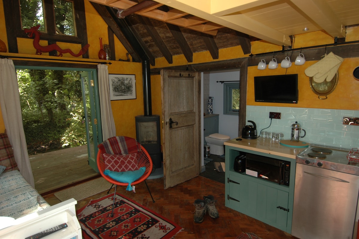 Con casi un siglo de antigüedad, los niños la llaman «La casa de las brujas» y no hemos cambiado su magia. Un altillo proporciona el dormitorio principal, una pequeña ventana con vistas a los jardines. En la planta baja hay una estufa de leña, un sofá cama doble y todas las comodidades necesarias. Las puertas francesas se abren a un patio con vistas al río y al bosque. A 40 minutos de Londres y estarás en otro mundo.