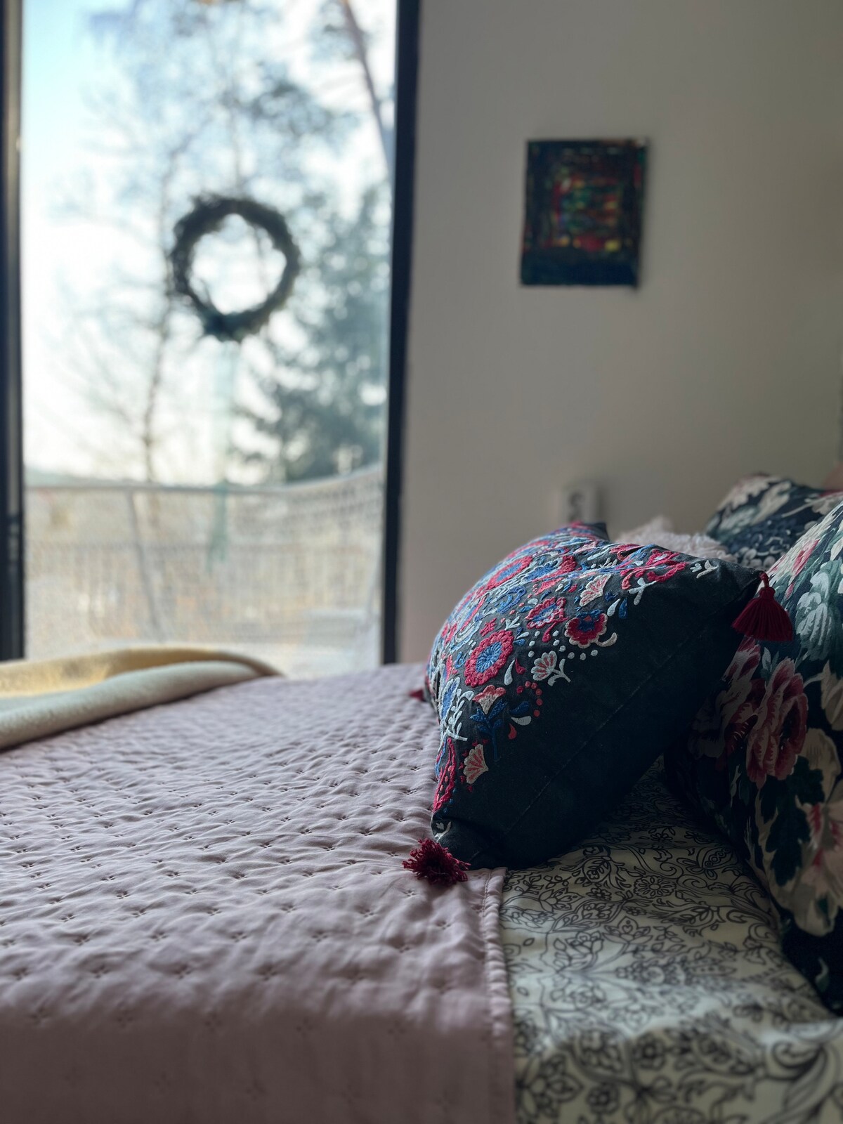 Premium conscious experience. Read bellow👇🏼 🤍Wake up in a cozy nest with a glass front opening to the forest canopy to enjoy birdwatching, listen to raindrops or music. A stone fireplace warms the heart of the cabin. Slow, mindful cooking invites you to the fully equipped kitchen and cozy forest garden by the fire. Come to explore this beautifully wild area, swim in the nearby dam Slapy and reconnect with nature