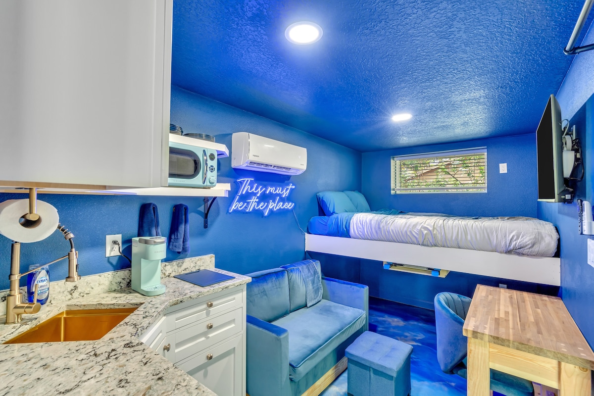 Welcome to our container, blue as the sky, Close to downtown Tampa, where dreams fly high. Compact and cozy, with all you need, A serene retreat for your stay indeed.