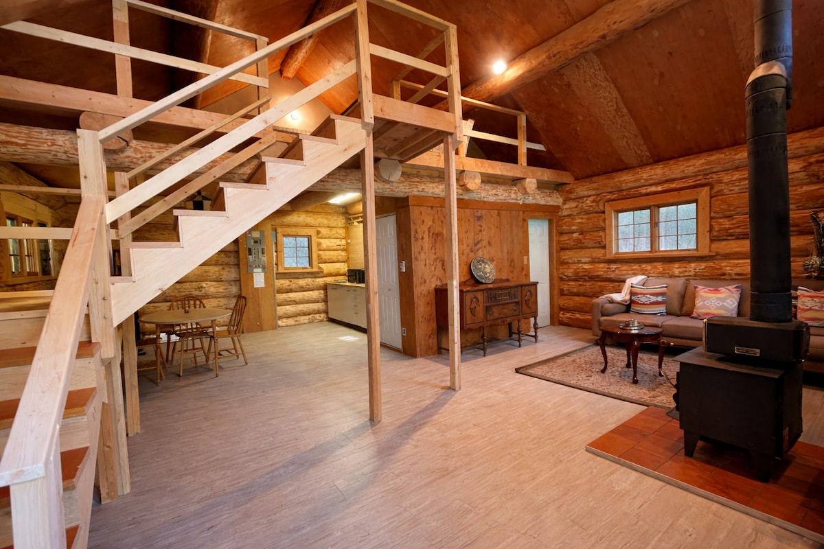 La cabina del oso espiritual es una cabina de registro de cola de milano de 600 pies cuadrados, con cocina pequeña, también hay una barbacoa/ahumador personalizado en el lugar para los huéspedes, gran loft arriba con 2 camas tamaño queen, ubicado en nuestro lote privado con árboles con estacionamiento para camiones y remolques. Propano calentado y mascotas bienvenidas con una tarifa de $ 30 por animal doméstico. También hay un jacuzzi privado!!