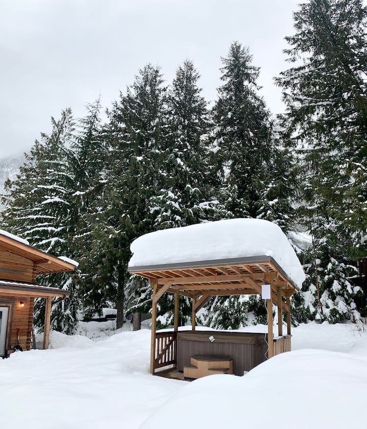Cabaña independiente acogedora, contemporánea de 2 dormitorios. Incluye baño de 3 piezas, cocina americana, TV de pantalla plana en cada habitación, chimenea de gas, aire acondicionado, lavadora/secadora, estacionamiento y 2 terrazas privadas con patio con calefacción/almacenamiento de equipo con cerradura. Los huéspedes también tienen acceso a nuestra bañera de hidromasaje cubierta al aire libre, a pocos pasos de la cabaña.