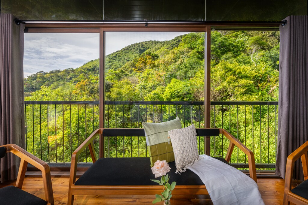 Escape to Aqua Pavilion at Kandy Victoria Eco Resort, one of the best boutique hotels in Kandy, Sri Lanka. This luxurious room features a private balcony and a chill tub, offering stunning views of Victoria Reservoir and lush mountains. Enjoy the perfect blend of traditional and modern architecture, complimentary breakfast, and serene surroundings in a calm residential area. Guided hikes, free bicycles, and personalized service complete your unforgettable stay.