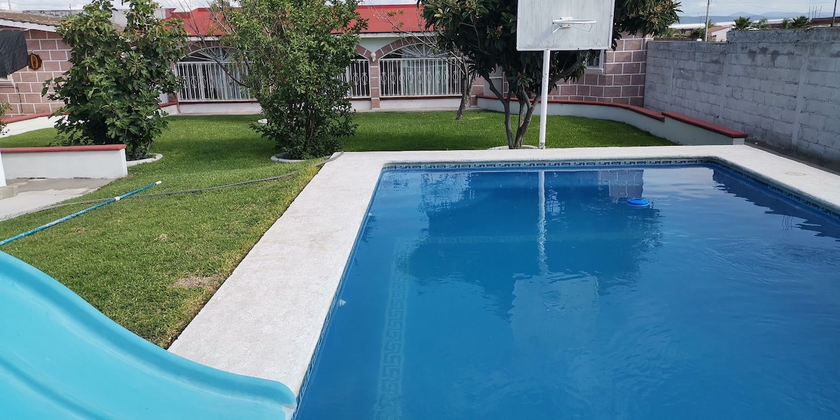 Casa entera con jardín, alberca privada, área de juegos, mesa de ping pon, asador con todos los servicios. Pasa un fin de semana relajado y alejado del bullicio. Trae a tu Mascota. A 30 min del centro de la ciudad de Querétaro, 30 min a Peña Bernal, 5 min aeropuerto, 35 min a Tequisquiapan, viñedos a 15 min Toda la casa es privada para ustedes, no se comparte con nadie más. Disfruta en familia