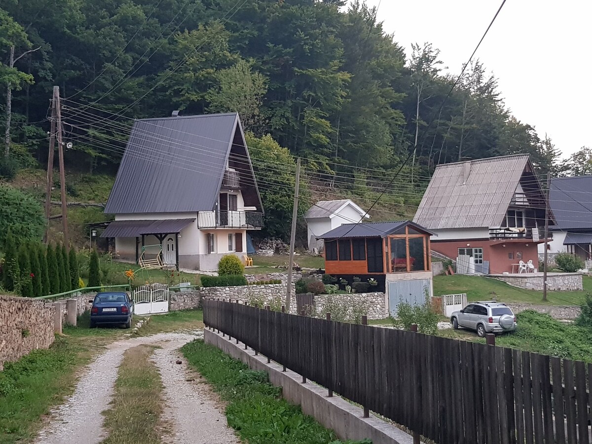 Nuestro chalet de montaña es la escapada perfecta de la ruidosa y abarrotada vida de la ciudad. Con un gran jardín con mucha vegetación y una parrilla de piedra para barbacoa, perfecta para familias con niños. Excelente ubicación cerca del lago Mavrovo y la zona de esquí. La ubicación es ideal como base para explorar las maravillas naturales de Mavrovo a pie, en bicicleta o en todoterreno que puedes alquilar cerca. Deja que el aire fresco de las montañas despierte tus sentidos cansados mientras te reconectas con la naturaleza. ¡Estamos deseando conocerte!