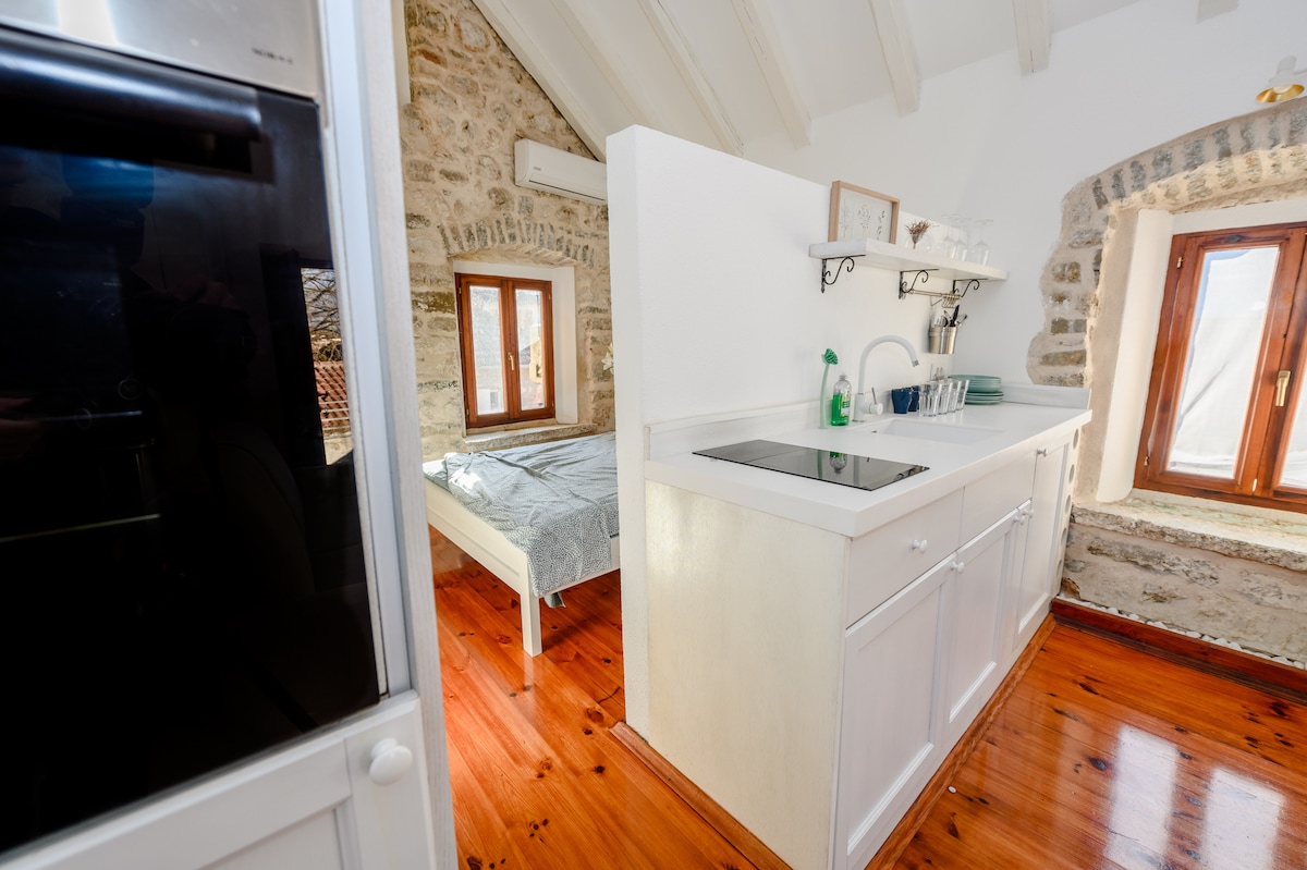 Entra en nuestra suite romántica, elegante y con estilo en el corazón del casco antiguo. Esta suite luminosa, bien equipada y limpia cuenta con una decoración antigua, creando un ambiente nostálgico. Ubicada en una casa de piedra centenaria, ofrece comodidad moderna con un toque retro y el encanto del pasado en cada rincón. Desde la acogedora sala de estar hasta el dormitorio más acogedor y la cocina totalmente equipada, sumérgete en el encanto de la Plaza de la Leche, evocando las épocas pasadas de la rica historia de Kotor.