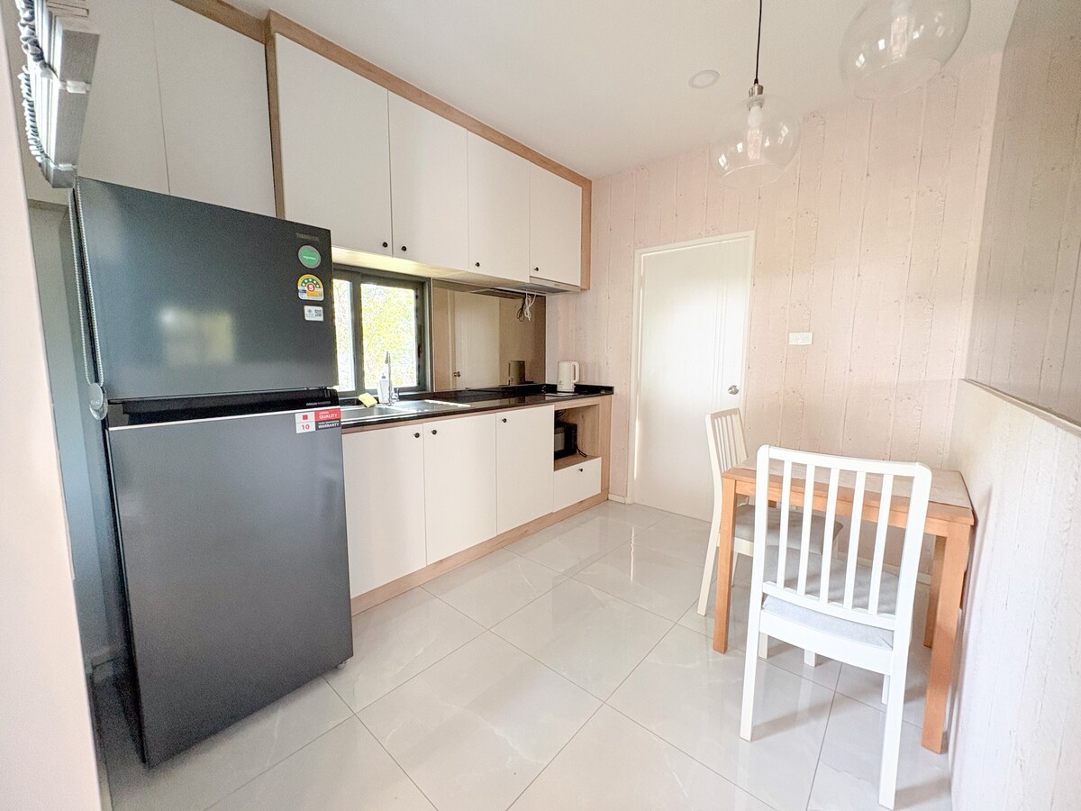 Villa 🌴🌴🌈✨con sonrisa en la piscina. Es una gran casa independiente adecuada para 8-10 personas. 🏊♀️Piscina privada. Cerca del mar, a solo 400 metros de la playa, parrilla, totalmente equipada con utensilios de cocina, casas grandes, gran relación calidad-precio, estacionamiento para varios coches. 🌺Toallas gratis 🌺Wi-Fi gratis Utensilios y platos 🌺gratuitos Bicicleta 🌺gratis Karaoke 🌺gratis 🎶🎶 Mesa 🌺gratuita de 7 pies 🌴Cerca de lugares de entretenimiento. 🌴Cerca de la zona gastronómica 🌴 Cerca del mercado de pescado japonés de Bangsaen 🌴Cerca del mar, a solo 400 metros de la playa. Nos centramos en el estacionamiento, cómodo y seguro. Haz todas las actividades dentro de la casa.