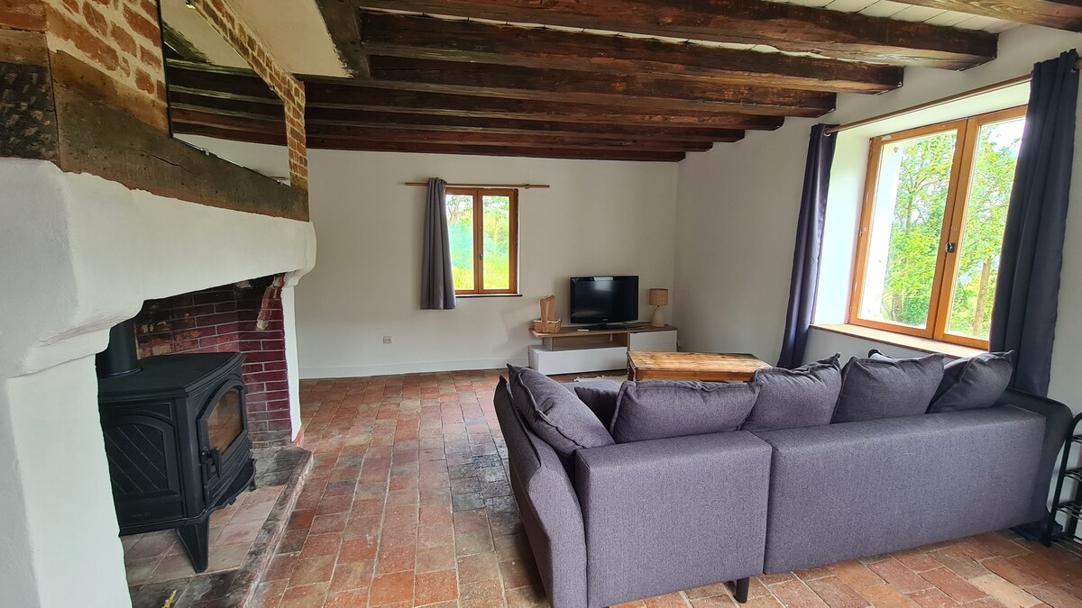 Cómoda, acogedora, extremadamente tranquila y encantadora casa de dos dormitorios, con capacidad para 6 personas, de 125 metros cuadrados. Completamente reformada en 2014. Antigua casa rural normanda tradicional, sin vecinos directos, 1 hectárea de jardín privado y acceso a 10 hectáreas de reserva ecológica, anidada en flores y prados verdes. Acceso para discapacitados, chimenea, apta para niños y perros.