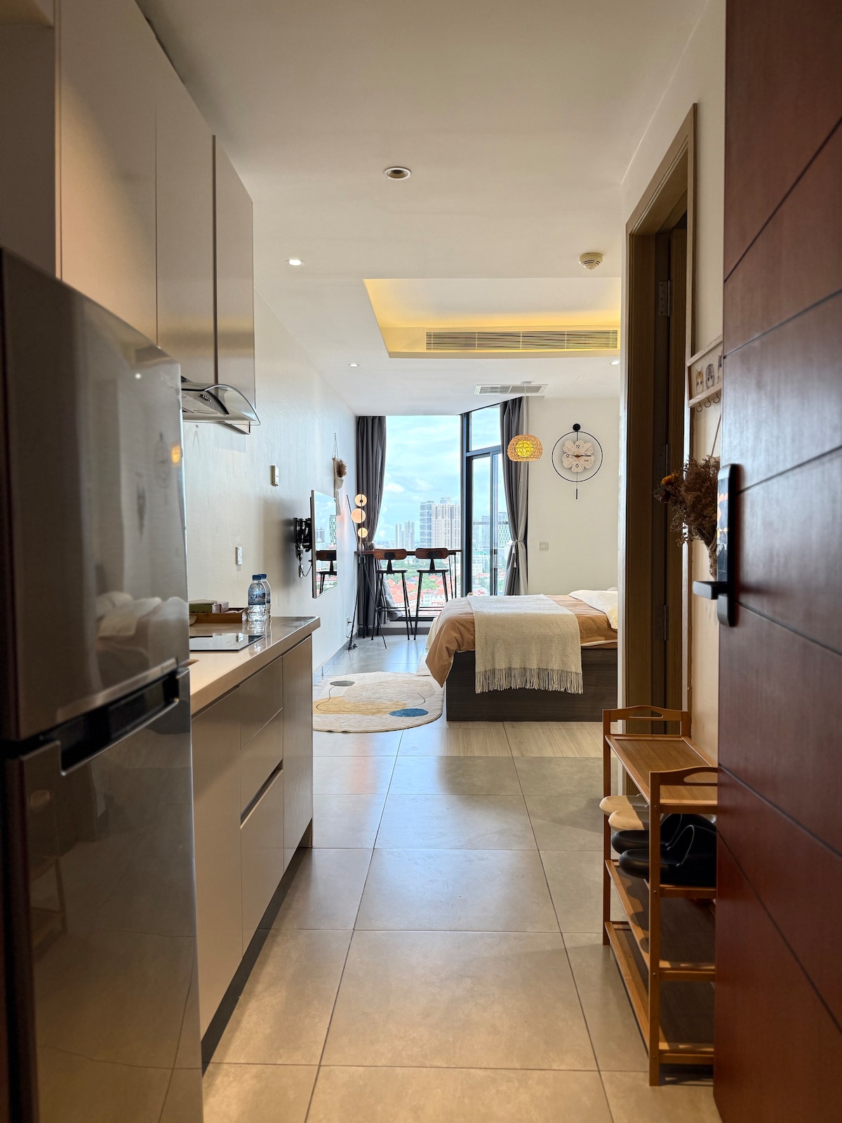 *Ten en cuenta que para estancias largas (a partir de 28 noches), habrá un cargo de electricidad a la tarifa de 0,25 USD/kwh. *Envíanos un mensaje si necesitas la recogida en el puerto aéreo. Situado en los pisos 11 y 12 con espectaculares vistas a la ciudad y al río, el espacioso y luminoso estudio de 38 metros cuadrados se completa con un amplio balcón, una cocina con electrodomésticos modernos, una mesa de comedor montada en la pared y servicio de lavandería de cortesía. Adecuado para el ejecutivo de negocios individual o una pareja que quiere disfrutar de una estancia relajada.