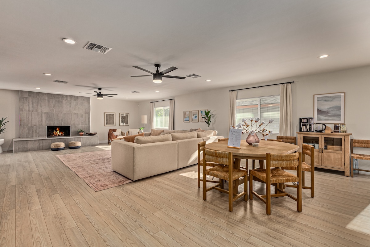 ¡Escápate a nuestra impresionante casa en el corazón de Chandler! Este refugio de 3 dormitorios y 3 baños es ideal para familias, parejas o amigos que buscan explorar la zona de Phoenix. La cocina totalmente equipada satisface las necesidades culinarias, mientras que el patio trasero presenta un verdadero oasis. Sumérgete en la piscina privada, relájate en el jacuzzi o en la sauna y reúnete junto a la acogedora chimenea. El patio cubierto es perfecto para comer al aire libre, completo con parrilla para barbacoa. Experimenta la combinación perfecta de comodidad y lujo. ¡Reserva ahora para una estancia inolvidable!