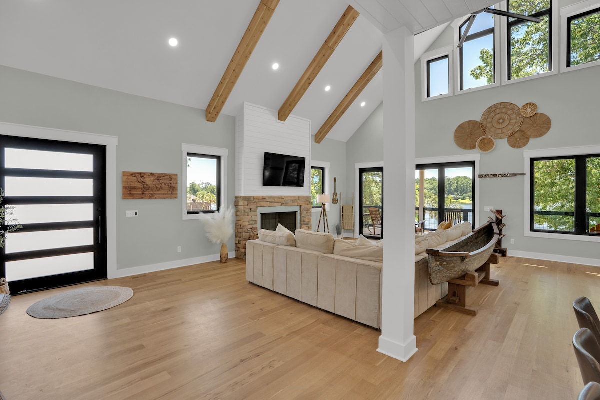Te damos la bienvenida a 'Sunshine and Naptime': esta casa recientemente renovada se encuentra en el lado de Chapin del lago Murray. Todo el alojamiento está recién amueblado y lleno de servicios. Esta casa de campo frente al lago de 3 dormitorios se encuentra en un punto con vistas panorámicas de 180 grados. Los techos abovedados de pino rústico muestran las ventanas de la pared a la pared para una vista que te dejará sin aliento. Puedes ver el amanecer Y el atardecer desde la sala de estar o una terraza de 600 pies cuadrados. Hay una bañera de hidromasaje, 2 kayaks, tejo y muelle privado.