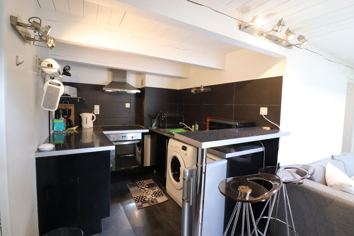 El alojamiento se encuentra a 5 km de Pons, cerca de las Antillas de Jonzac (15 min) y a 40 min de la playa de Royan. Podrá descubrir productos locales como el Pineau des Charentes y el coñac. Perfecto para parejas, personas que viajan solas y viajeros de negocios, es un loft de 50 m² contiguo a nuestra casa con entrada independiente: cocina equipada, cama nueva con colchón de 160 , sala de estar con TV, vestidor, billar. Muebles de jardín . Cafetera Senseo. Planifique sus compras.