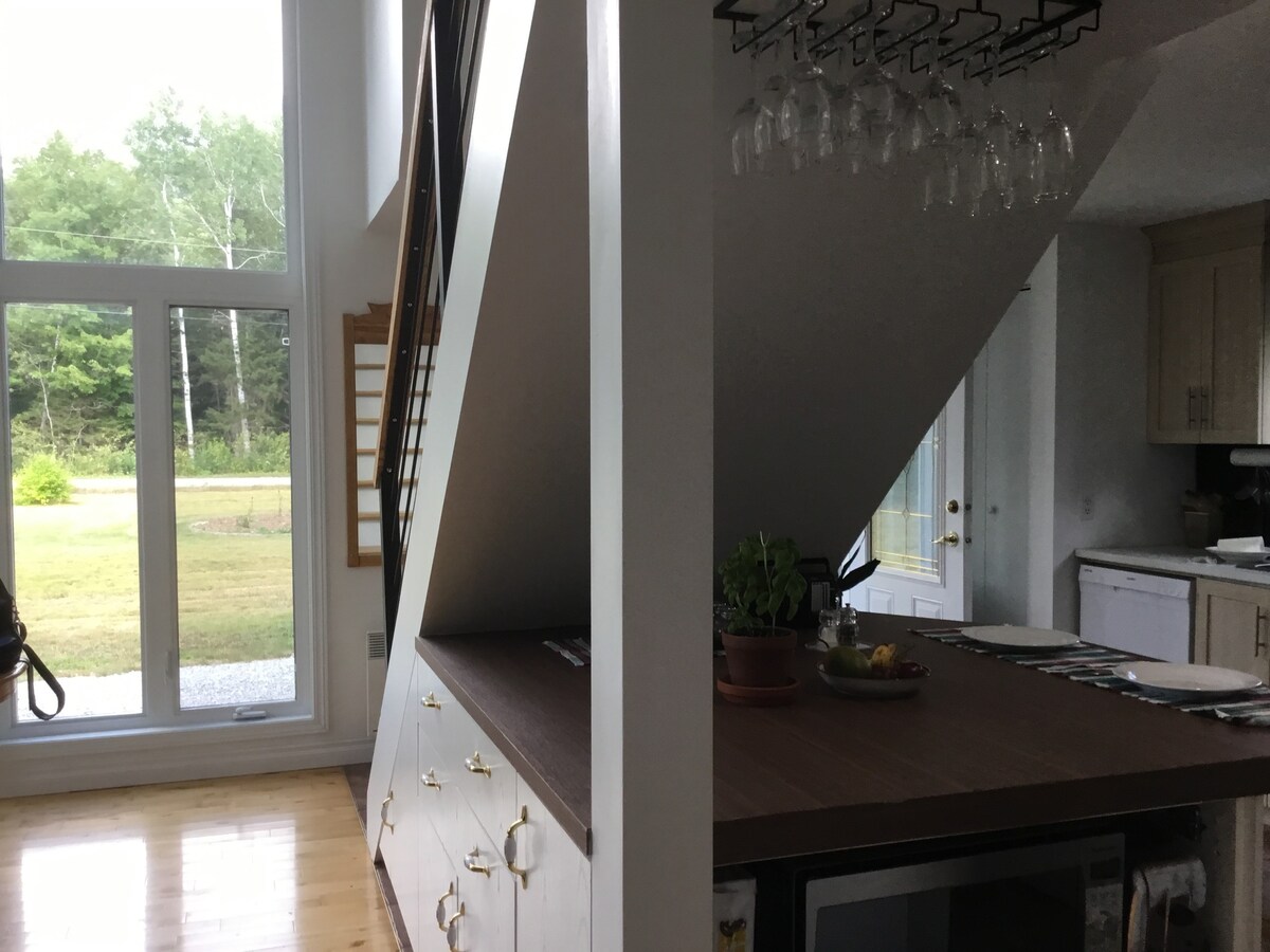 Situada en un camino privado, hermosa casa de campo con vistas espectaculares al río St. Lawrence. Techo catedralicio con chimenea de doble cara. El gran techo de cristal de 28 pies, así como los 2 dormitorios, dan a la puesta de sol. Electrodomésticos de alta gama. Terreno arbolado e íntimo de 140 000 pies cuadrados con acceso a un pequeño lago. Pista de hielo natural en invierno. Terraza exterior con barbacoa. Chimenea exterior. Una propiedad con un carácter único. No fumadores, no mascotas Veranda 3 estaciones
