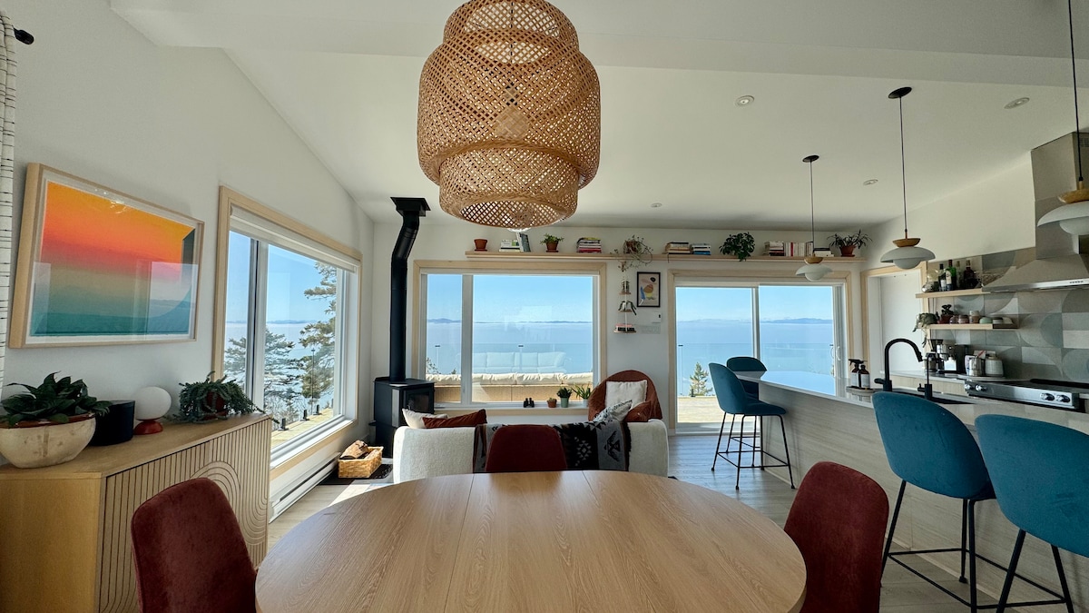 Superbe vue du Saint-Laurent, maison plein sud, superbe fenestration pensée pour vous faire profiter d'un bain de soleil. Ressentez l'air salin grâce à une immense terrasse surplombant le fleuve. Maison rénovée au goût du jour alliant modernité et hospitalité. Ambiance chaleureuse et design fonctionnel. Réveillez-vous devant un magnifique lever de soleil en sirotant votre café et en admirant le paysage. Terminez vos journées auprès d'un feu de foyer. Climatisation pour l'été. CITQ 308186