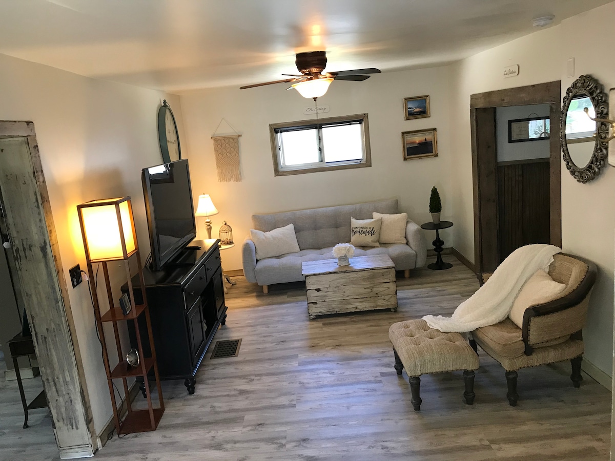 Adorable casa de carruajes a pocos pasos del lago Míchigan, con chimenea de gas para esas noches frescas de Míchigan. A solo 2 millas del centro de Charlevoix y muy cerca del carril bici que bordea el lago Míchigan. El apartamento tipo estudio tiene una cama muy cómoda con baño completo con ducha y cocina tipo estudio totalmente equipada. Barrio tranquilo con chimenea de gas para hacer smores o simplemente hablar sobre tus aventuras diarias durante tu estancia. Apropiado para 2 adultos que deben poder subir escaleras.