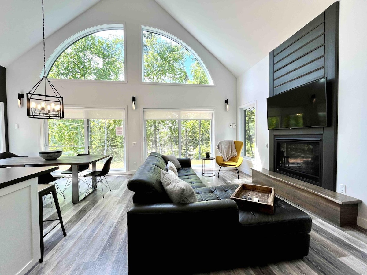 Pequeño chalet escandinavo para dos personas idealmente ubicado para disfrutar de las atracciones de Charlevoix. Cuenta con un circuito termal (bañera de hidromasaje, sauna, hammam). Muy íntimo y en medio del bosque, la vista da al majestuoso río y a las montañas a lo lejos. Todo el equipamiento moderno está allí y la comodidad es absoluta: aire acondicionado y chimenea al aire libre. El diseño de concepto abierto fue diseñado para una experiencia inmersiva en la naturaleza: grandes ventanales, ducha panorámica. Acceso a través de una carretera privada a 500 m.