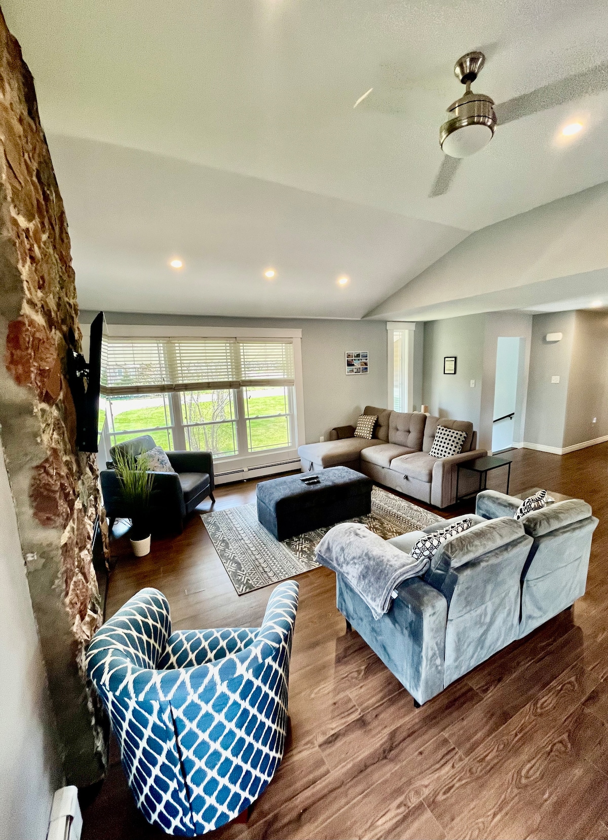 Escápate a nuestra espaciosa casa de vacaciones loft de 2 dormitorios en la hermosa PEI Céntrica ubicación a solo 10 minutos de Charlottetown. A 5 minutos en coche de una tienda de comestibles y licores, Starbucks, Tim Hortons y restaurantes. Estamos a 2 km en coche del parque provincial Tea Hill y a 15 minutos a pie de una playa local. Tenemos un dormitorio tamaño king y otro queen para que estés cómodo después de un largo día. Baño con ducha, toallas, jabón y champú. Disfruta de nuestra soleada sala de estar y cocina, o sube a la cubierta para tomar un café y admirar la hermosa vista al agua.