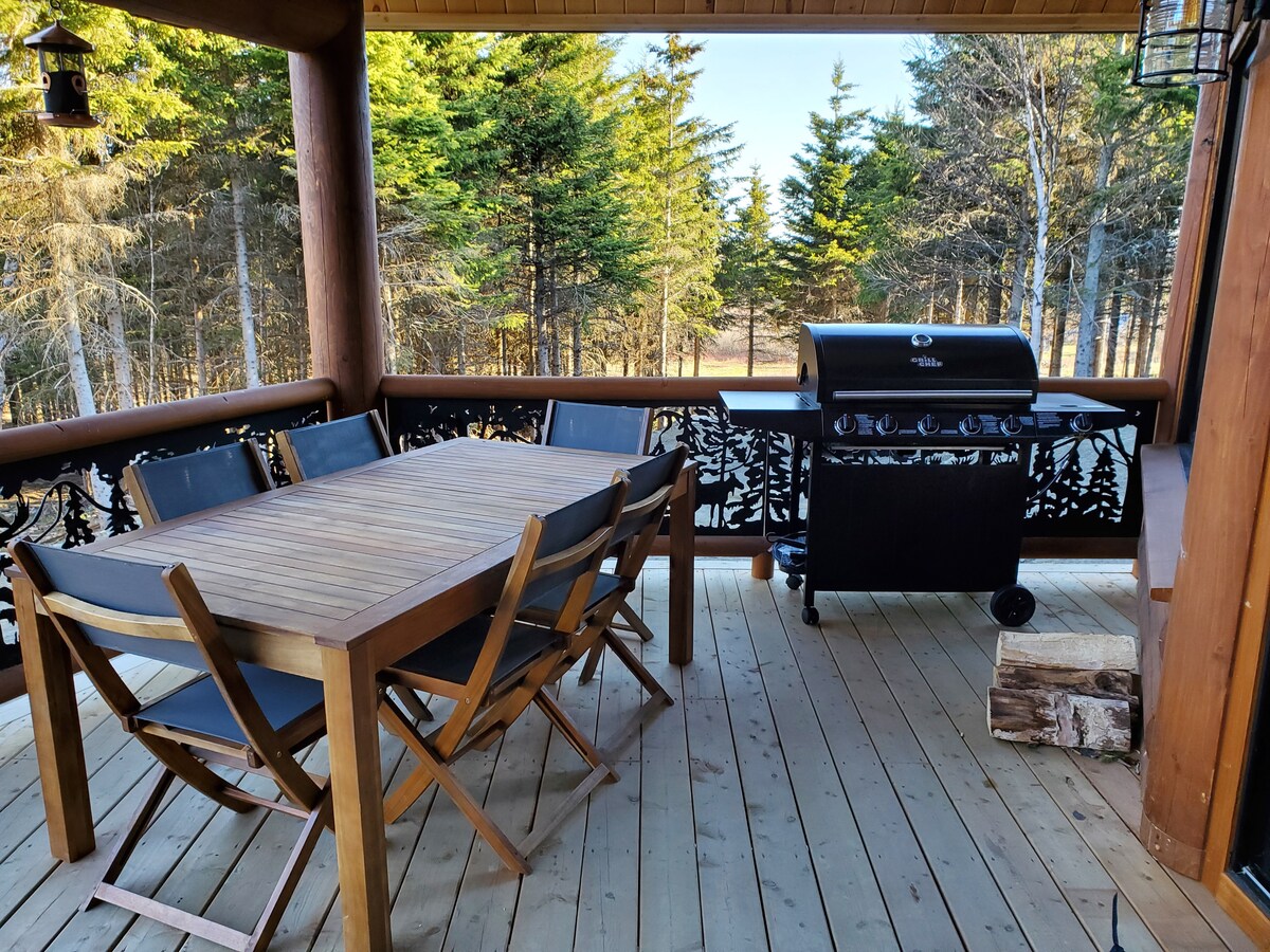 Chalet tout équipé incluant une borne électrique VE, internet haute vitesse dans un domaine privé, pure détente en contemplant les étoiles et profiter de la nature à son meilleur. Grandeur=24' x 24' (816 p carre) Bienvenue aux compagnons à 4 pattes! Havre de paix dans le bois pour randonnée pédestre, raquettes, vélo de montagne, chasse, lacs pour la pêche, baignade (15 min du chalet) etc. Sentiers fédérés et pistes de motoneige. À 15 minutes du Parc National du Mont-Mégantic et du Mont-Gosford