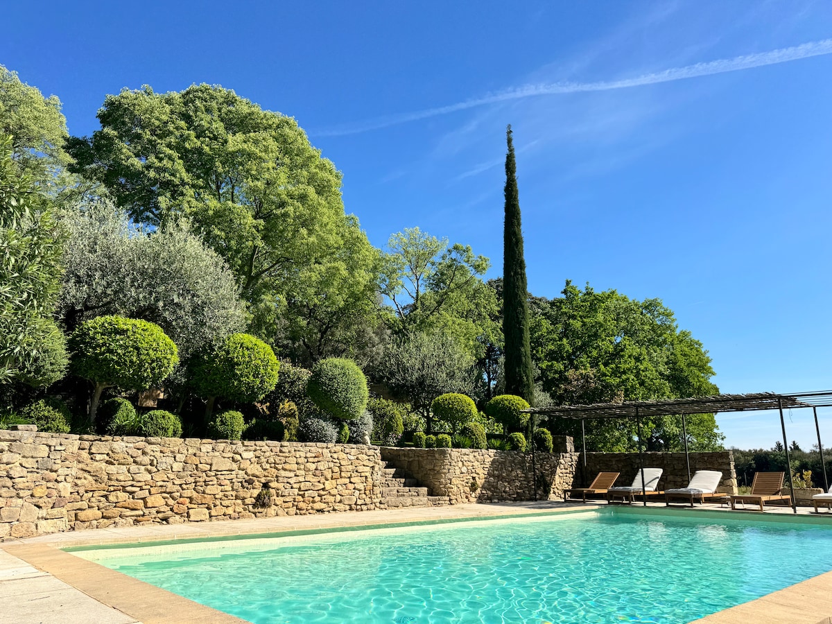 Alojamiento turístico amueblado de 4*: 65 m2 en un entorno verde. La terraza privada da a un bosque de robles y pinos con vistas a las colinas. Un dormitorio con una cama grande (calidad hotelería) y un baño en suite + una cocina abierta totalmente equipada y con vistas a una sala de estar con 2 bancos-cama individuales. Equipamiento completo, piscina compartida con los propietarios Estaremos encantados de hablar de buenas direcciones de la zona si los viajeros lo desean.