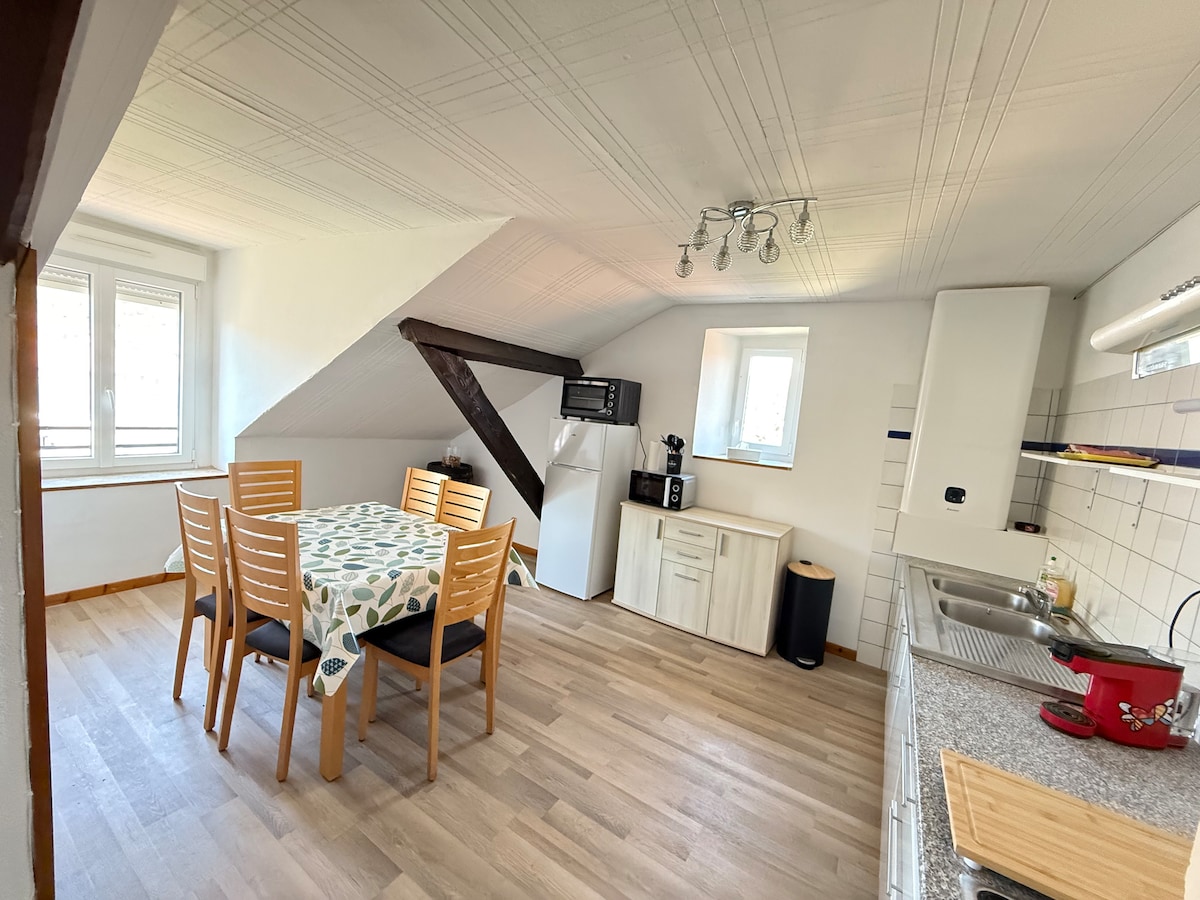 Apartamento de 50 m2 para 2 o 3 personas con una habitación ( una cama de 160 x 200 ) y un sofá cama ( 1 persona ) . Completamente equipado. En la planta baja situado en una calle tranquila en el centro de Dieuze . Estacionamiento gratuito cercano . Cerca de todas las comodidades . ¡Situado a 3 minutos a pie de la sala de La Délivrance! Cuna y silla de bebé previa solicitud . Se admiten animales.