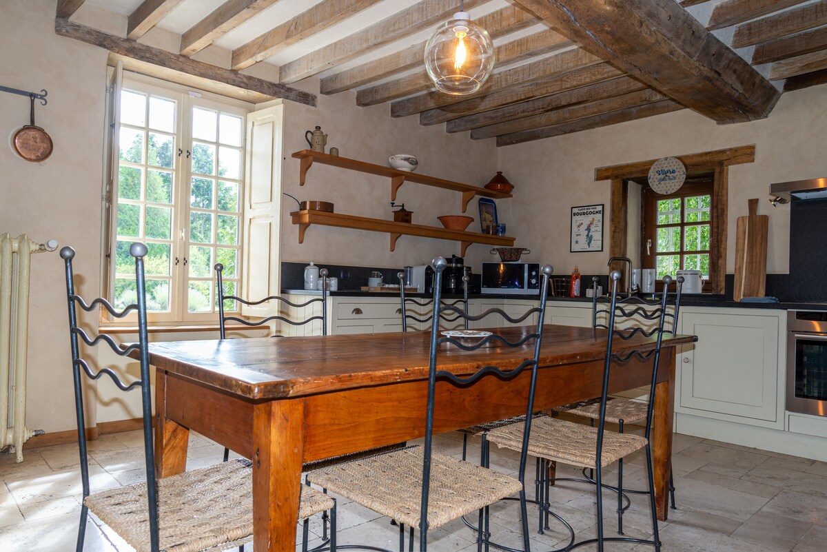 El Logis de la Tour Saint-Michel, que data del siglo XII, es uno de los edificios de la antigua abadía cisterciense de Bellebranche. En el corazón de una aldea medieval en plena naturaleza, adosado a un bosque rodeado de estanques, se encuentra en el sur de Mayenne, a 12 km de Sablé-sur-Sarthe y a 15 km de Château-Gontier. Alejado de los ruidos del mundo, reina un silencio casi monacal en este entorno verde.
