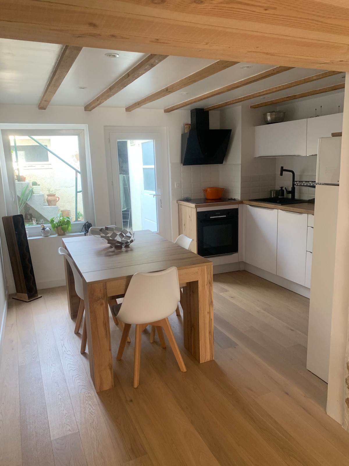 MAISON DE CHARME classée 3 *** sans vis à vis, 75m2. Jardin clos et emplacement pour deux voitures å l'avant. A l'arriere pelouse 100m2 avec terrasse bois 30m2, petit bar couvert et barbecue. Logement tout confort. Wifi / TV grand écran plat 160 chaînes / grille-pain / bouilloire électrique / cafetières/ panneaux solaires sur toiture... Possibilité arrivée autonome (boite à clé). Prise standard extérieure pour véhicule électrique (kw facturé et à régler le jour du départ)
