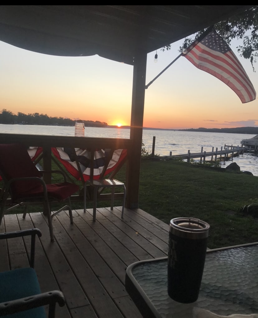 Tómate un descanso y relájate en este tranquilo oasis frente al lago rodeado de árboles maduros. El porche del segundo piso ofrece mucho espacio para cenar al aire libre con vistas a algunos de los mejores atardeceres del lago Chautauqua. Disfrutarás de cerca de 100pies frente al lago en Tinkertown Bay, justo enfrente de la Institución Chautauqua. Lleva tu barco a nuestro muelle (compartido con los vecinos) o asa algunos s'mores en la chimenea junto a la orilla. Nuestro muelle se retirará el 10/11/25 y generalmente se instala a principios de mayo