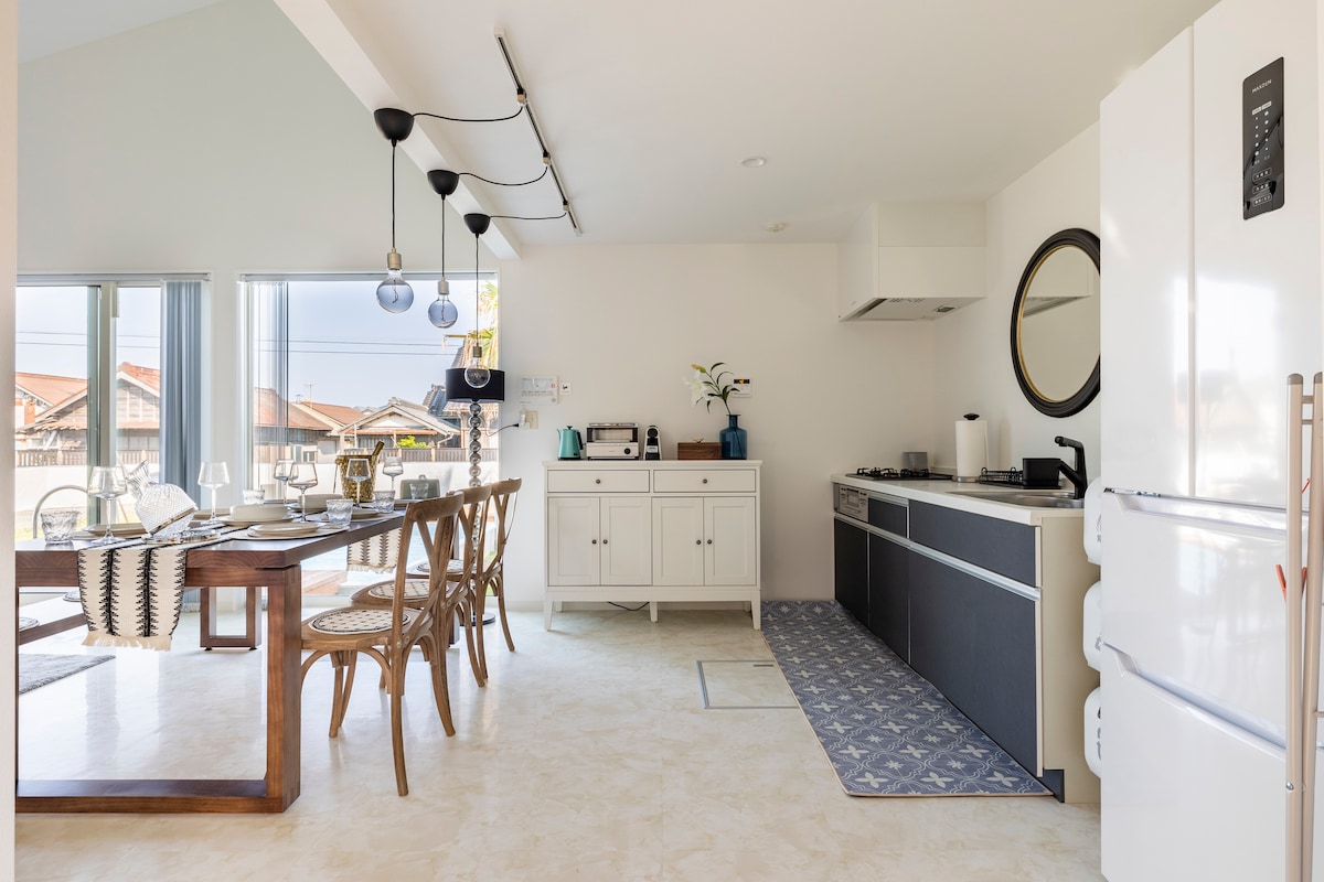 «The Garden Villa Kujukuri» Puedes utilizar toda la villa del resort de 200 m ² cerca del mar.Puede alojar hasta 15 personas y mascotas, para que puedas disfrutarlo con varias familias, grupos de amigos y mascotas preciosas. Se encuentra a 90 minutos en coche de Tokio, a 10 minutos a pie de la playa (costa de Shirako) y a 1 minuto a pie de una tienda de comestibles, por lo que es popular entre las familias con niños. En el exterior, puedes disfrutar de una sauna de barril y un baño al aire libre (baño de agua disponible) mientras contemplas las palmeras y el gran jardín.También hay un espacio cubierto para barbacoa y un fogón en la plataforma de madera.Además, todo el jardín está vallado, por lo que es un parque privado para perros. En el interior, tenemos tenis de mesa en la sala de juegos y juegos de mesa/cartas en la sala de estar.Netflix está disponible en la gran televisión de la sala de estar. La cocina y el comedor en el primer piso permiten que grupos grandes cocinen y coman, y el espacio para barbacoas está cerca y es fácil de usar, por lo que es popular.También es un espacio integrado en el interior y en el exterior con vistas al jardín, y hay una sensación de apertura. * Asegúrate de comprobar la información en las fotos del anuncio cuando traigas mascotas o uses la sauna/barbacoa.