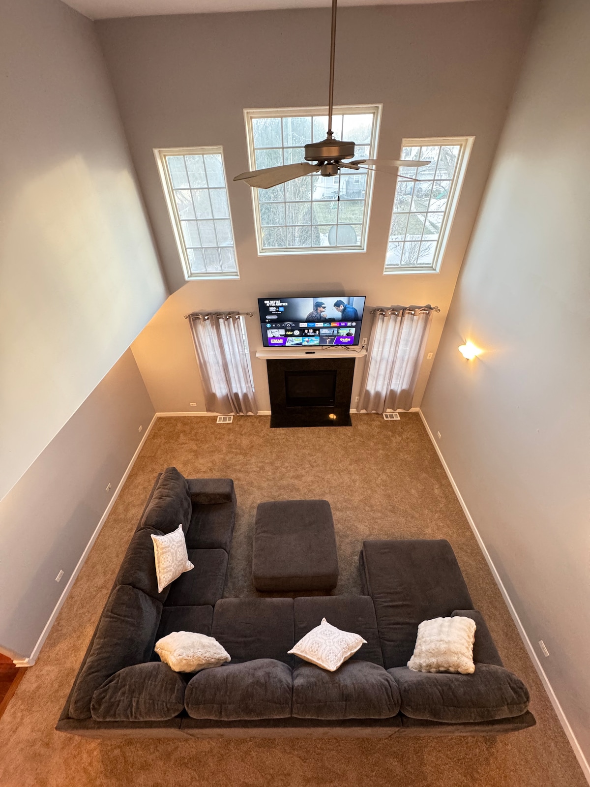 Amplia casa llena de servicios a pocos minutos del aeropuerto O'Hare, perfecta para familias y grupos. Tiene capacidad para muchos con 1 cama tamaño king, 3 camas tamaño queen, una litera doble y 3 futones individuales. Disfruta de 4 baños completos, incluido un jacuzzi principal, armarios en cada dormitorio y una cocina totalmente equipada con barra de café. El entretenimiento incluye una sala de teatro, gimnasio, ping pong, mesa de juegos 4 en 1 y juegos de mesa. Garaje privado para 2 autos más estacionamiento en la entrada incluido.