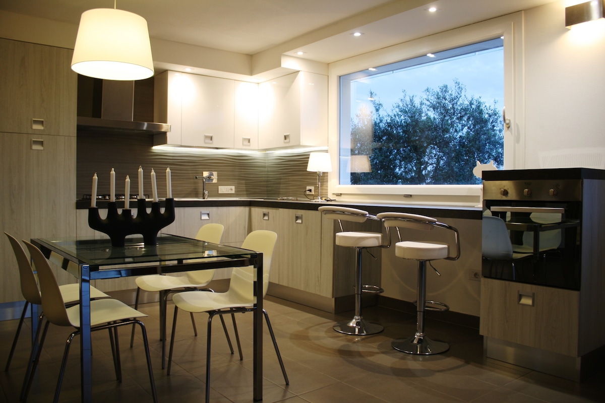 Apartamentos Villa Mare en Pomonte, departamento de tres habitaciones con amplio espacio al aire libre en el mar donde puedes cenar frente a la puesta de sol. El apartamento consta de un dormitorio con una cama doble y una cama individual con su propio baño privado, una pequeña sala de estar con cocina y otro dormitorio doble con su propio baño privado.