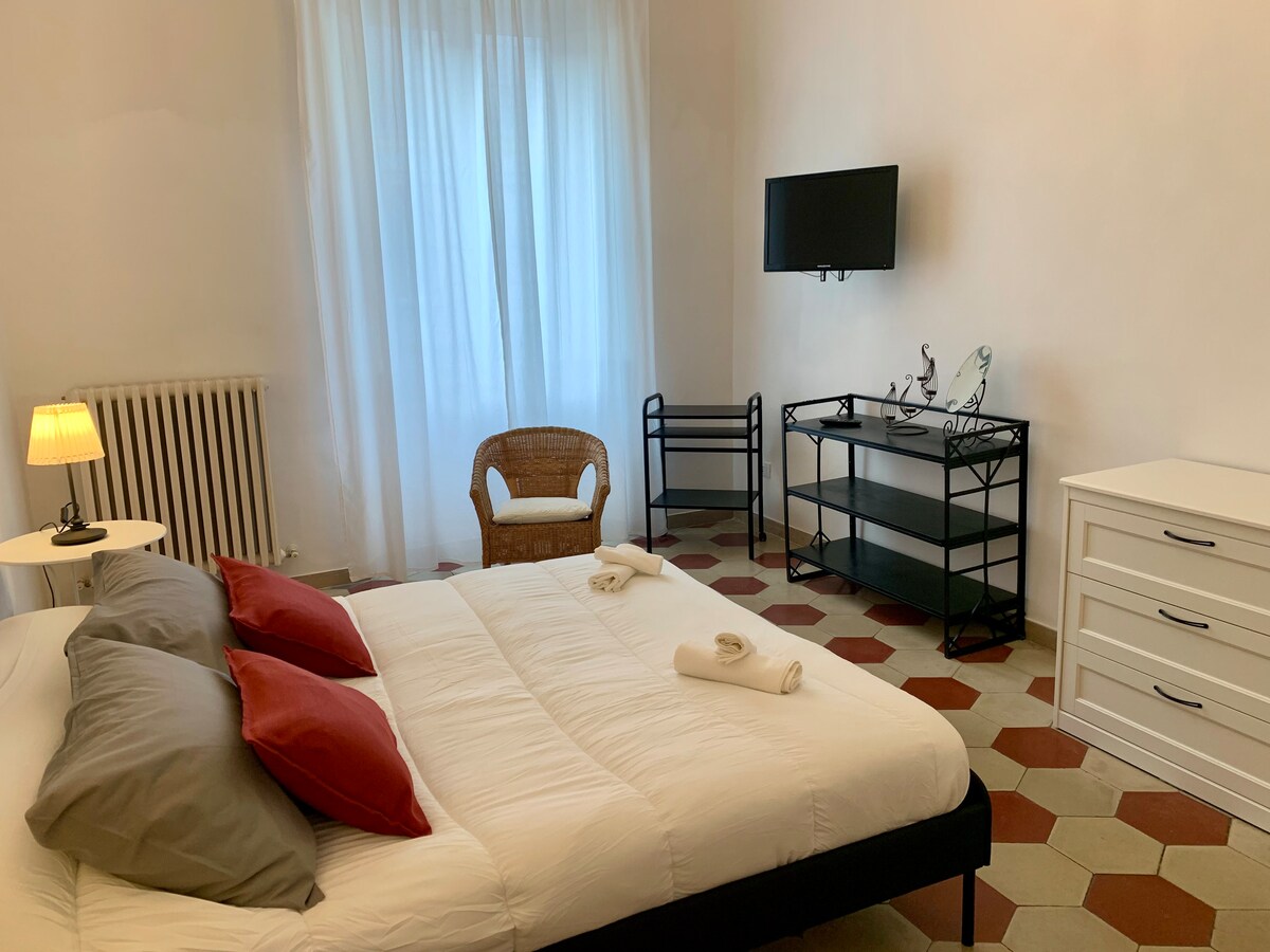 Puedes sentirte como en casa en mi acogedor departamento. Se encuentra en el tercer piso ( sin ascensor) de un edificio típico de los años 50 en el centro de Chieti Scalo, a pocos minutos a pie de la estación central y en medio de servicios y restaurantes. Es un área ideal para aquellos que necesitan una ubicación estratégica para llegar en transporte público o privado a las principales ubicaciones de la región o para aquellos que necesiten llegar cómodamente al Hospital SS Annunziata o a la Universidad D'Annunzio.
