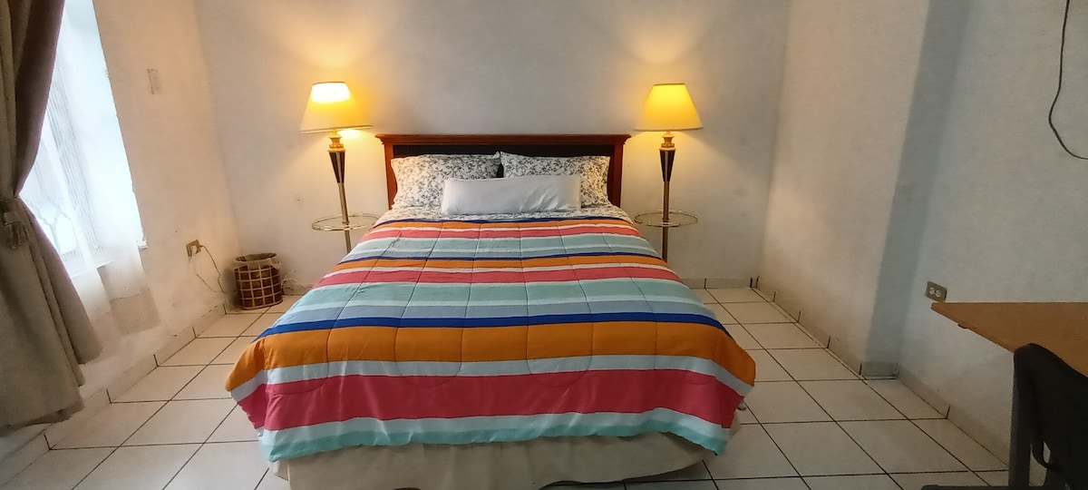 Disfruta de este alojamiento tranquilo y con excelente ubicacion, cerca de tiendas y bellos parques, a unos minutos del centro de la ciudad, con excelente vista al parque, estacionamiento privado hasta para 2 vehículos, terraza en ambos pisos, internet, área de trabajo, television con Netflix, cocina equipada, cafétera con sus respectivos suministros, completamente privada y lista para que la disfrutes! El horario de llegada es flexible! puedes preguntarnos disponibilidad! Facturamos!